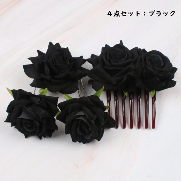 4点セット ヘアアクセサリー ヘアコーム ダンス ヘッドドレス 成人式 髪飾り 赤 黒 薔薇 フラメンコ フラダンス 卒業式 袴 大きなバラ レッド バレッタ ak5-ta