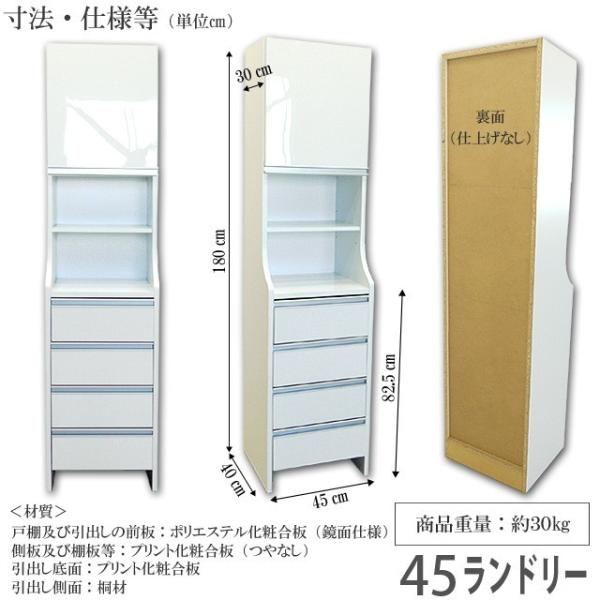 国産 45ランドリー収納 鏡面 木製ランドリーボックス 白 ランドリー ラック スリム キッチン 隙間 収納 収納庫 完成品 日本製 送料無料