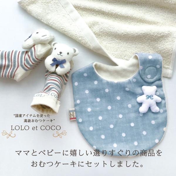 送料無料 おむつケーキ 高級オーガニックコットン ロロ&ココ 名入れ刺繍対応 おむつタワー お祝い 出産祝い ギフト プレゼント ベビー ラッピング ママ