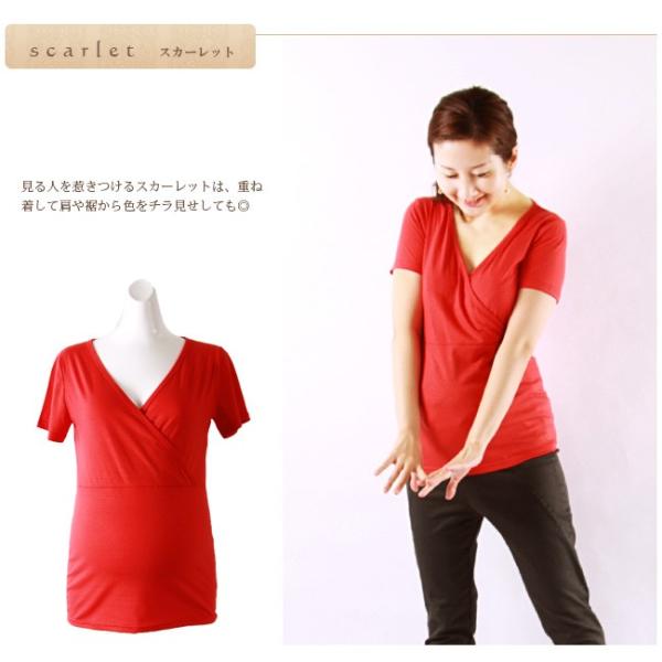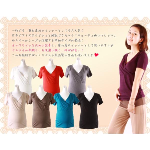 <授乳服・マタニティウエア>半袖キューティ☆ママシャツ 授乳インナー(授乳しやすいカシュクールタイプ) ※2枚までメール便可