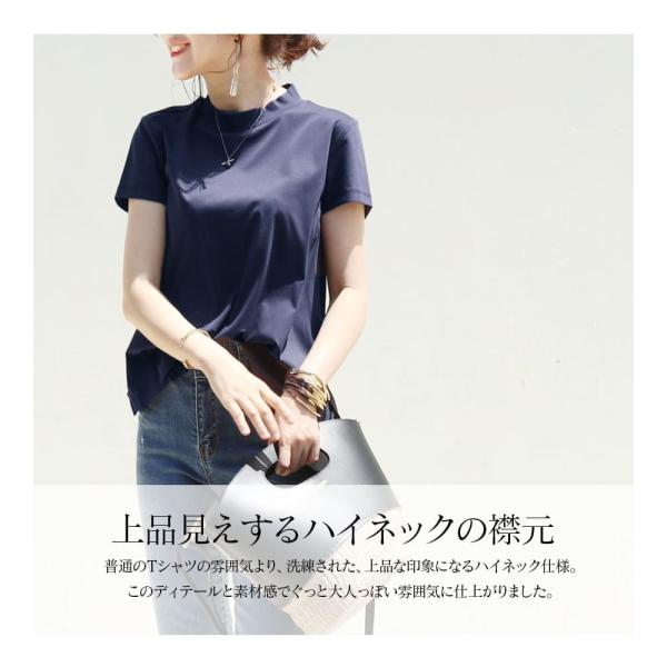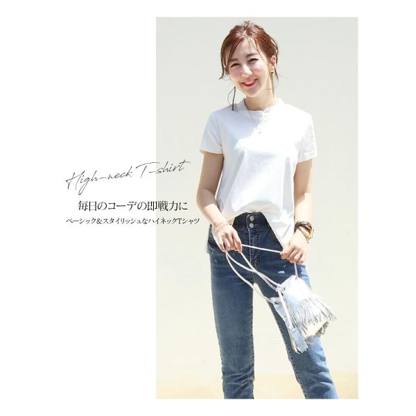 毎日使いたい!ベーシックでシンプルだけど、スタイリッシュに上品に着られる大人女子のハイネックTシャツです。