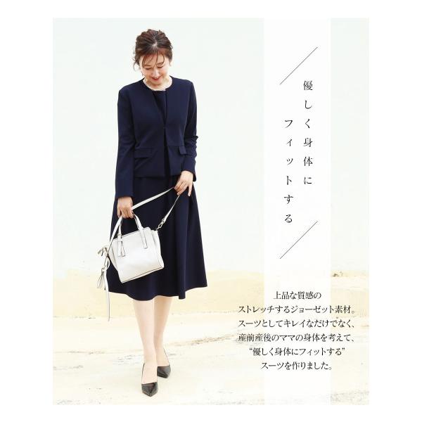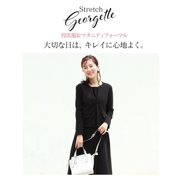 マタニティ 服 授乳服 ストレッチジョーゼットスーツ【6116114】 授乳ワンピース&ジャケット2点セット・ジッパータイプの授乳口 スーツ フォーマル