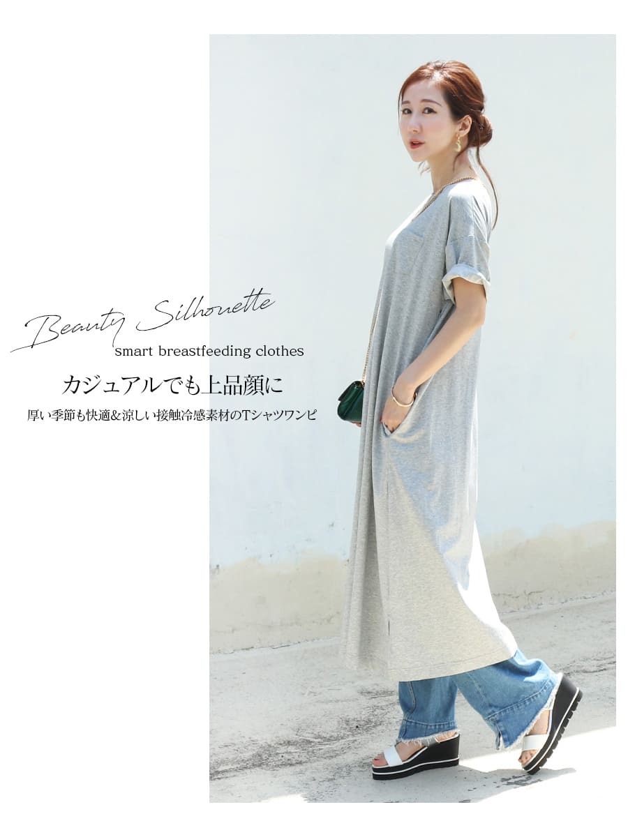汗ばむ季節に嬉しい!ママと赤ちゃんを考えた、「接触冷感」&「抗菌機能付き」の授乳ロングワンピースです。