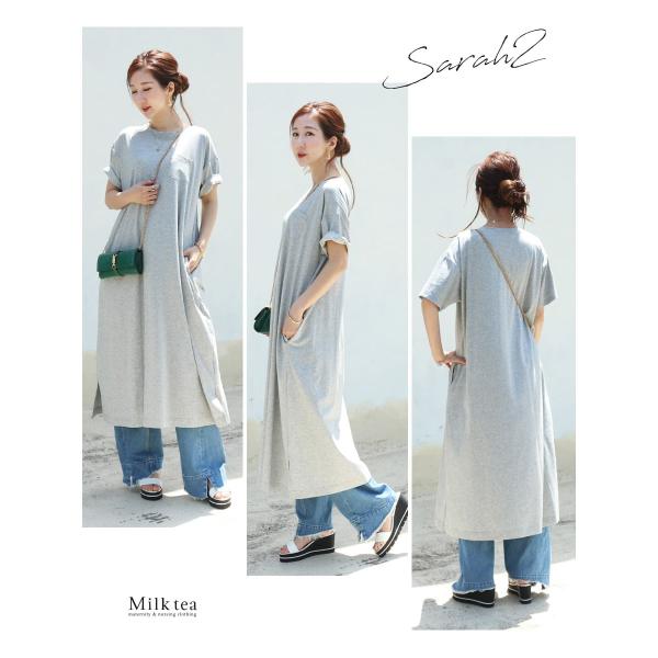 マタニティ 服 授乳服 サラ2・接触冷感&抗菌機能付き!さらっと快適ワンピース【6315231A】 ロングTシャツ