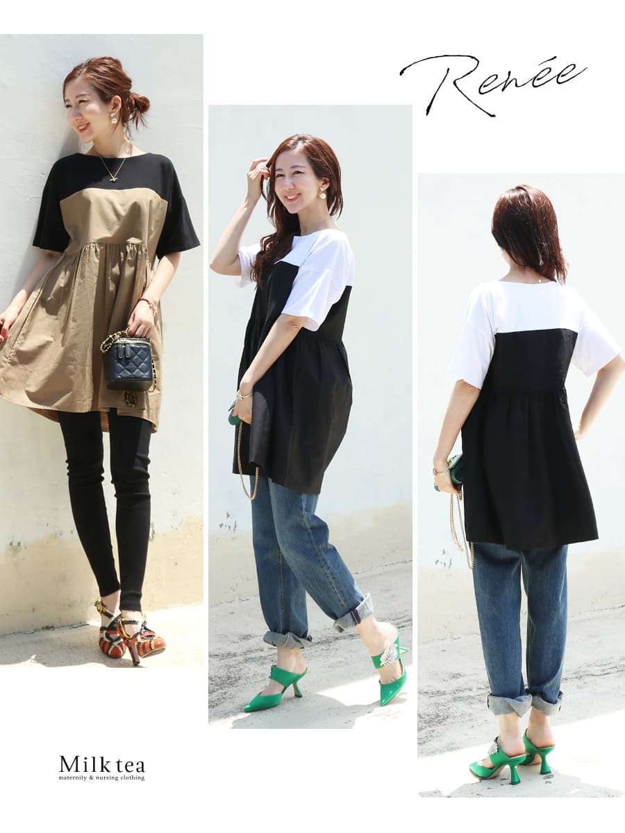 バイカラーでコーデしやすい、お腹も楽ちんな上品大人チュニック。