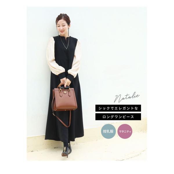 SALE マタニティ 服 授乳服 ナタリー・袖サテンエレガントロングワンピース ジッパータイプ マタニティウエア お宮参り フォーマル オケージョン