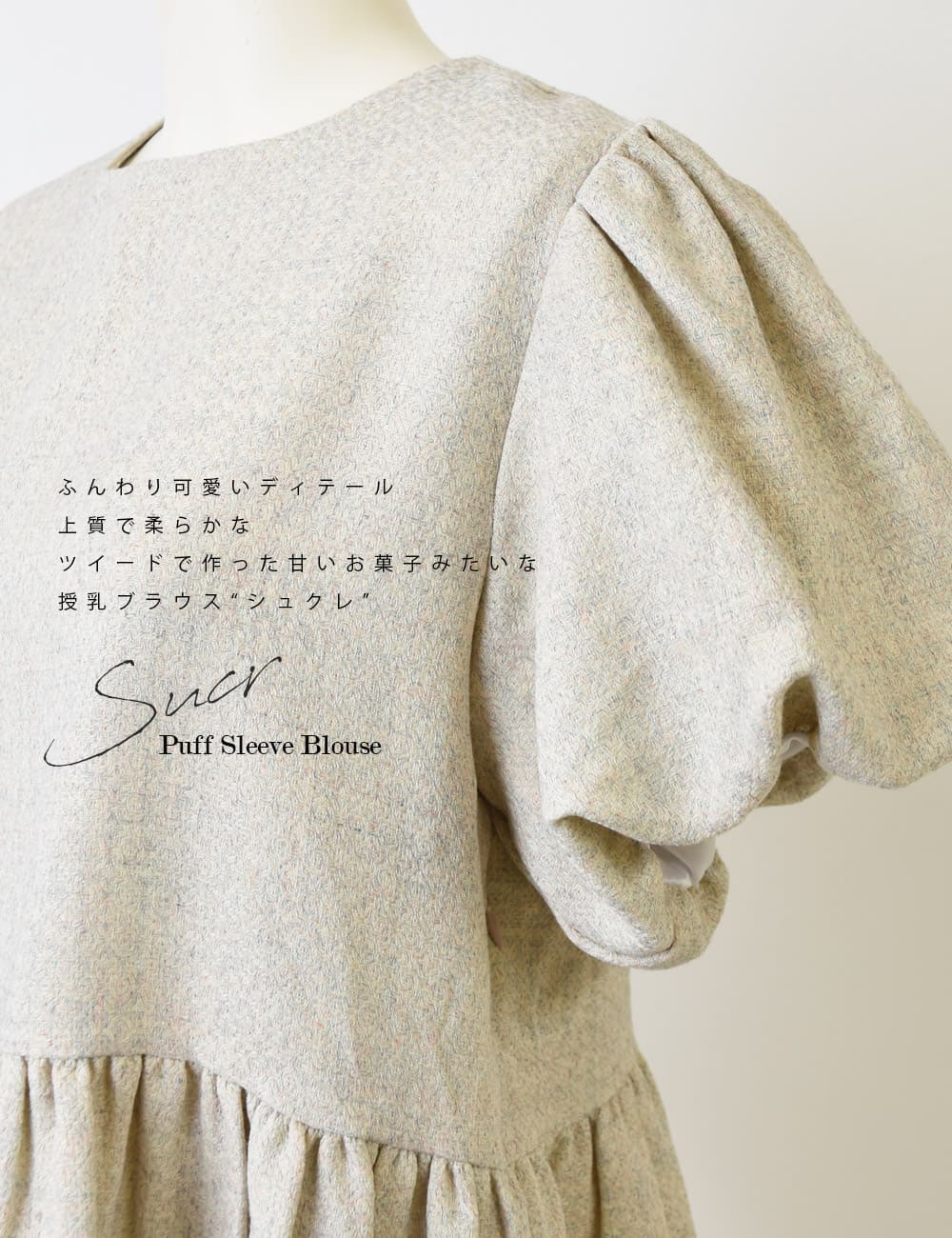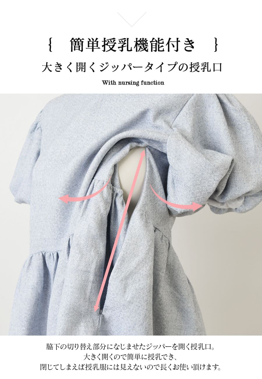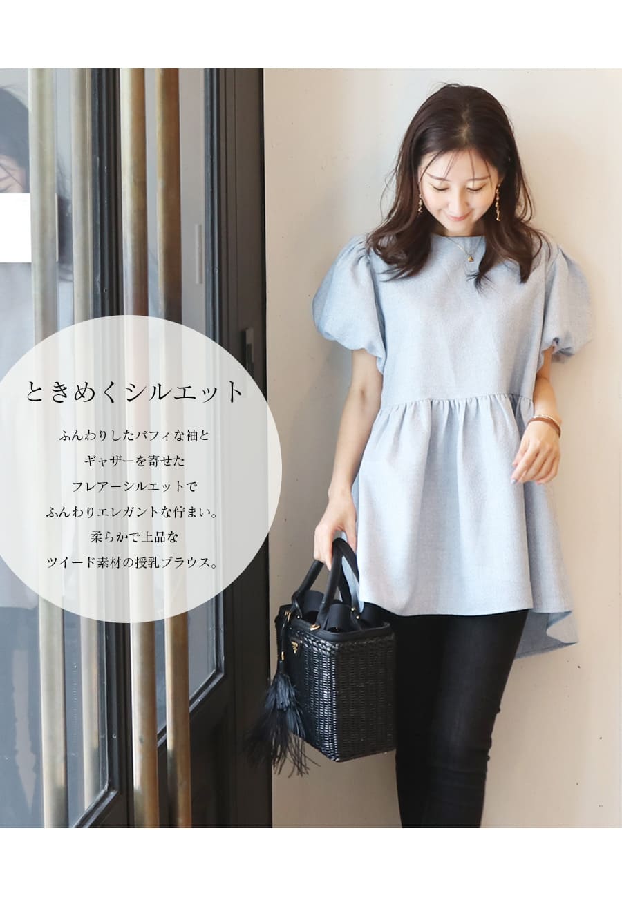柔らかで上質なツイード素材をつかった、ふんわりフェミニンなシルエットが可愛い《マタニティ&授乳対応》ブラウスです。