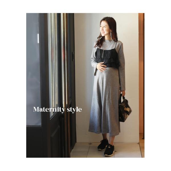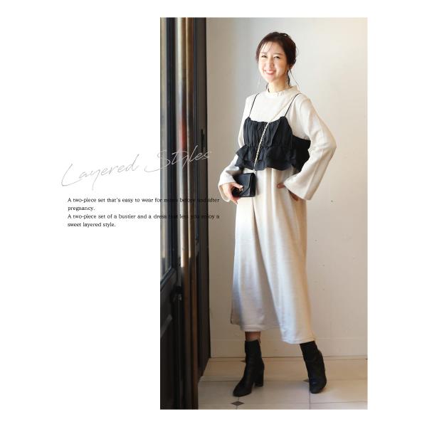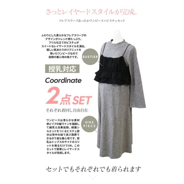 マタニティ 服 授乳服 フレアスリーブあったかワンピース&ビスチェセット【587411】授乳服 授乳 マタニティ マタニティ