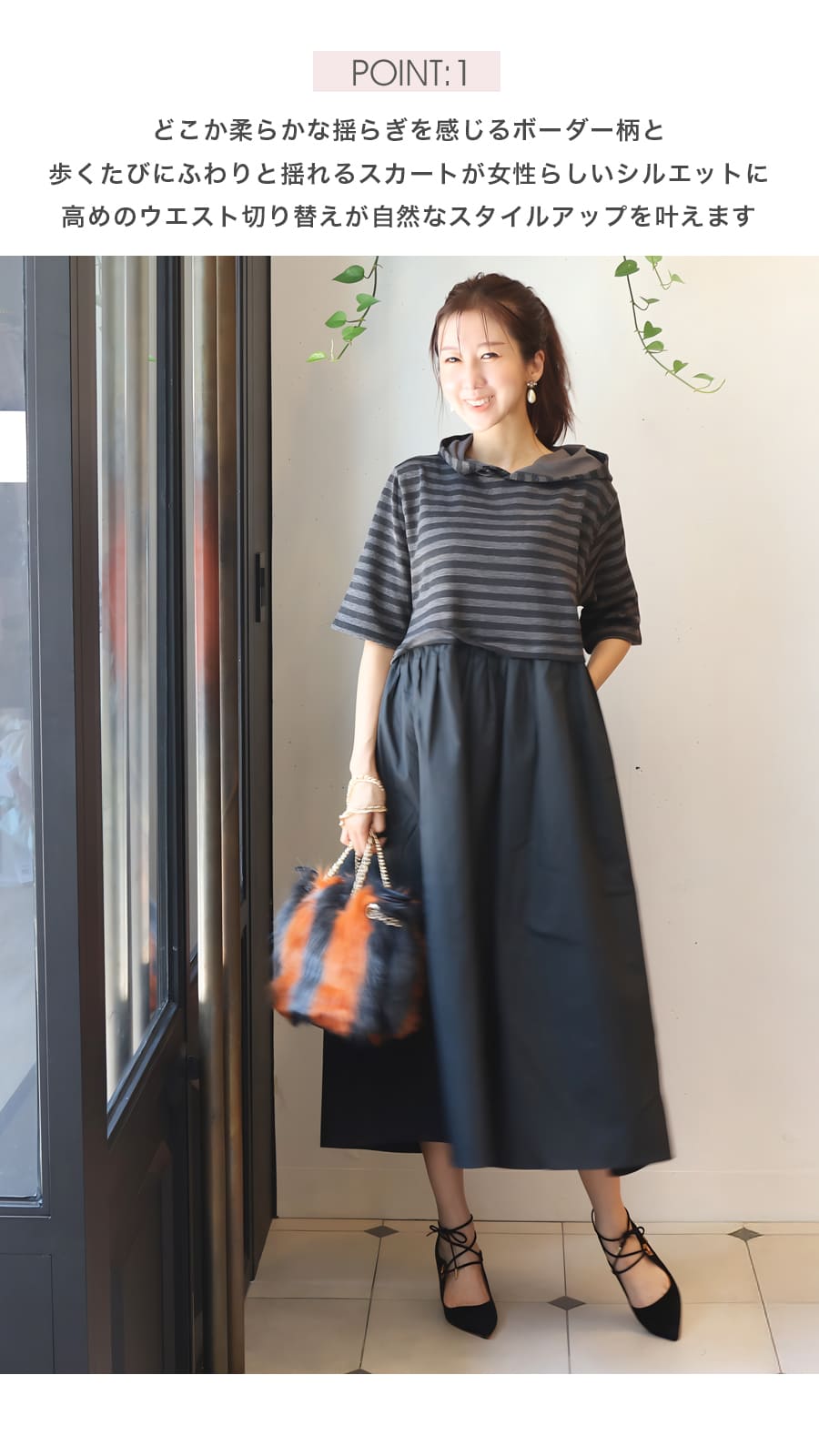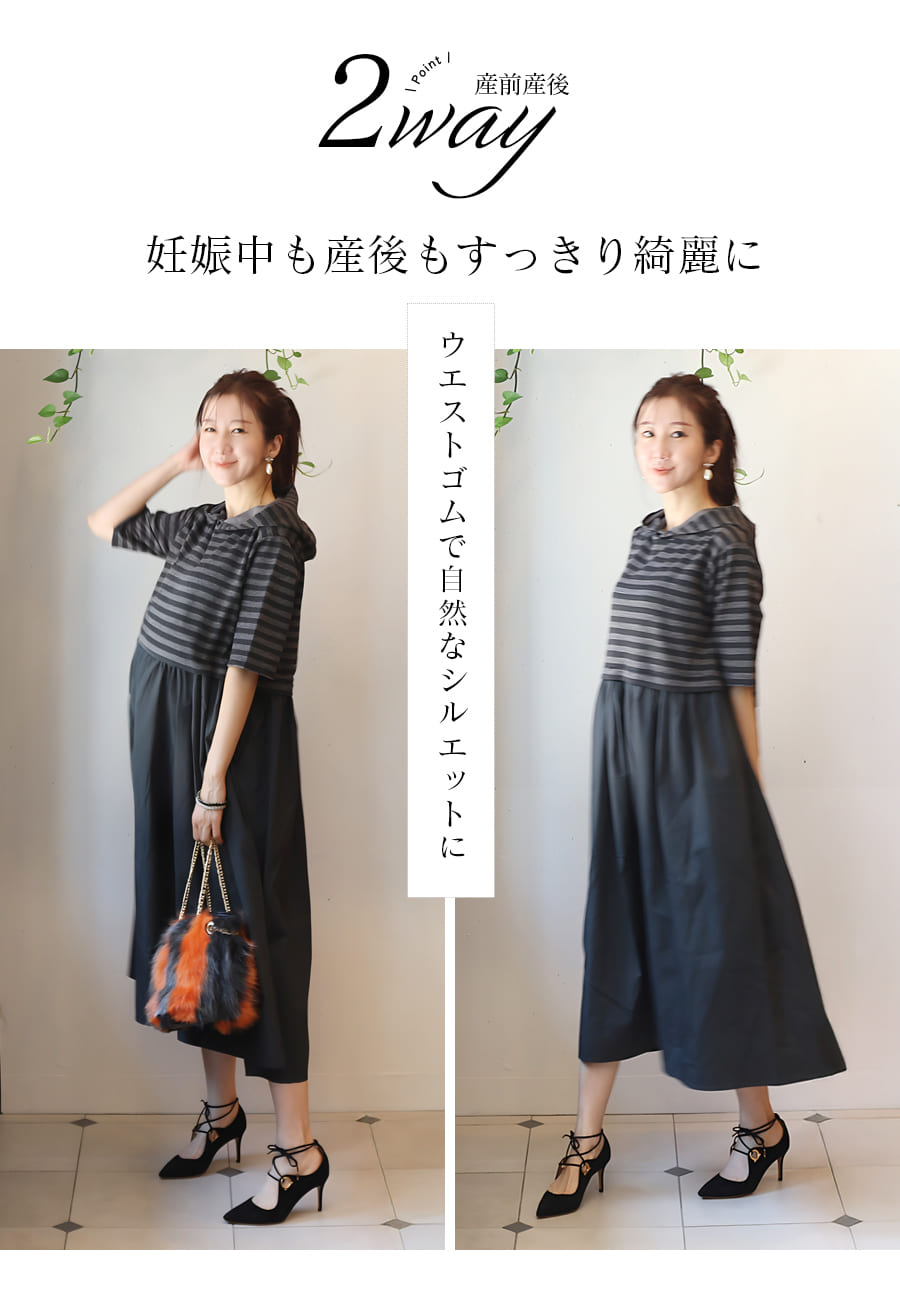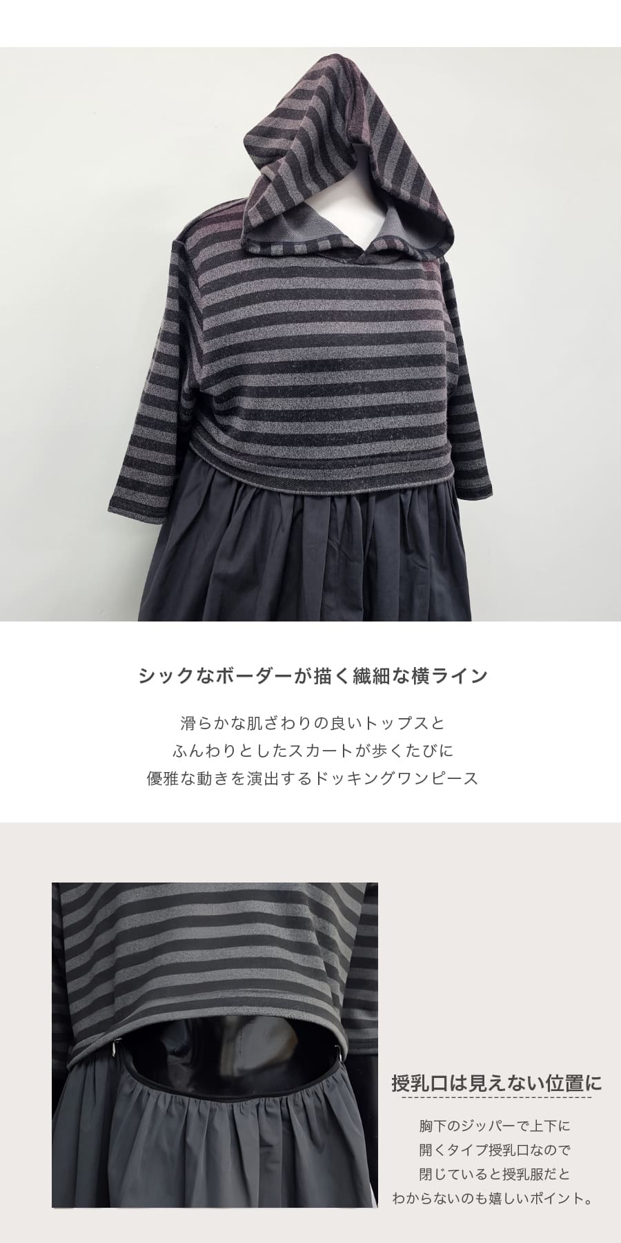 マタニティ 服 授乳服 アンナ・ボーダードッキングワンピ ジッパータイプ