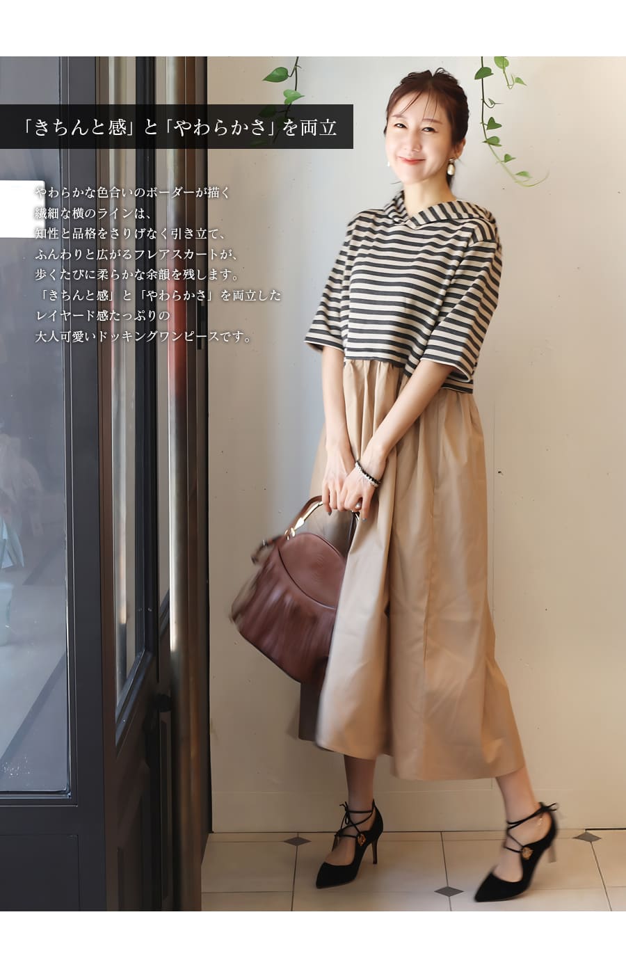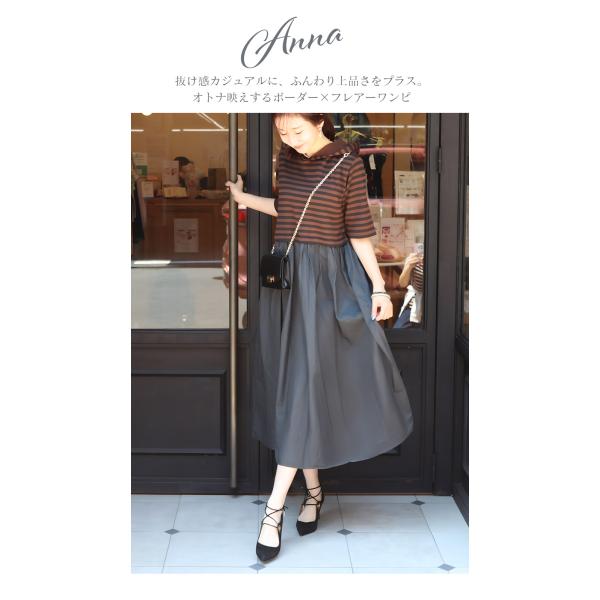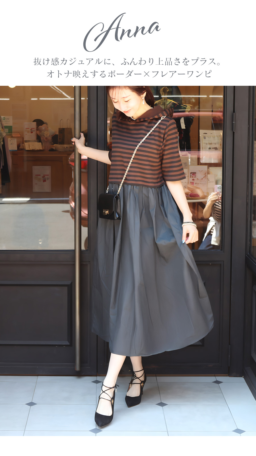 マタニティ 服 授乳服 アンナ・ボーダードッキングワンピ ジッパータイプ