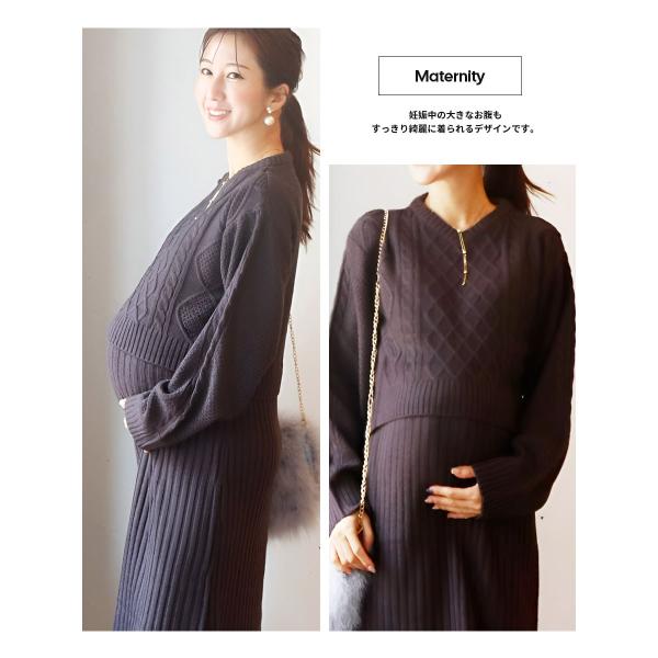 マタニティ 服 授乳服 ケーブル編みニットワンピース カシュクール 【582152】