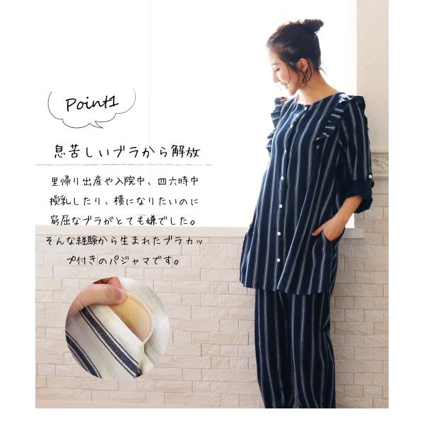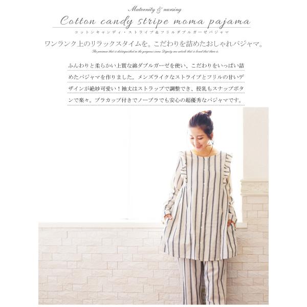 マタニティ 授乳パジャマ コットンキャンディ フリル&ストライプWガーゼパジャマ【6119108】 綿100% ブラカップ取り外し可 安い