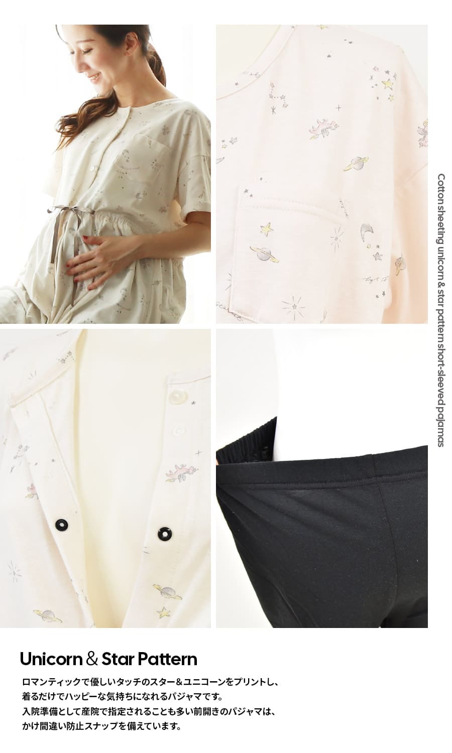マタニティ 服 授乳服 天竺ユニコーン&星柄半袖パジャマ【585924】 スナップボタンタイプ 妊娠 出産 産前 産後