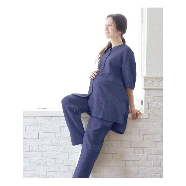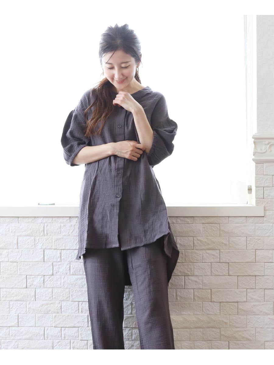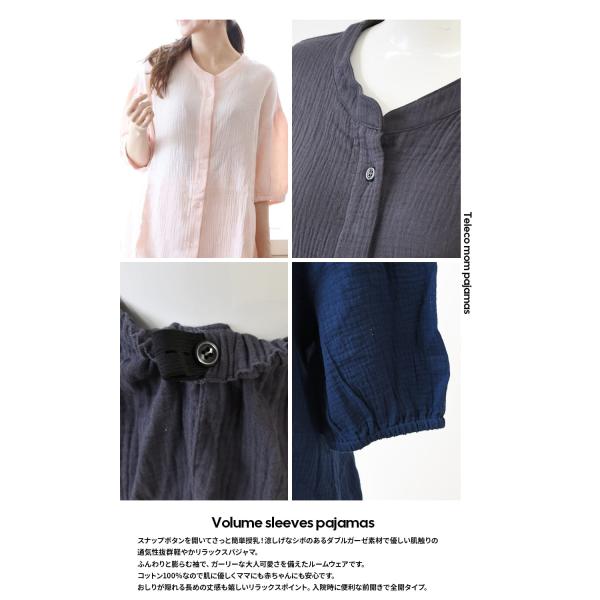 産前産後 授乳口付きパジャマ 涼しげなシボのあるダブルガーゼ素材 コットン100%ボリューム袖パジャマ【585026】