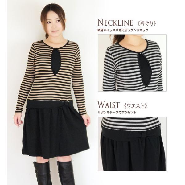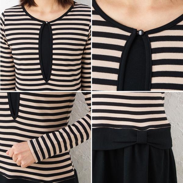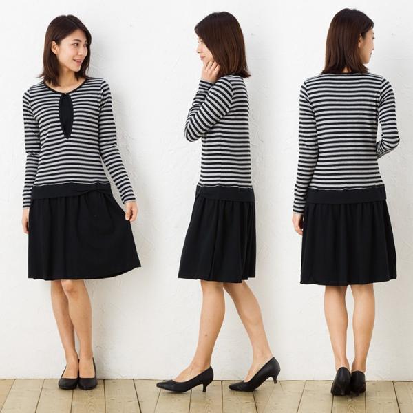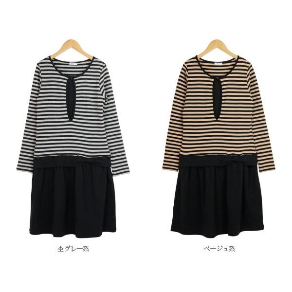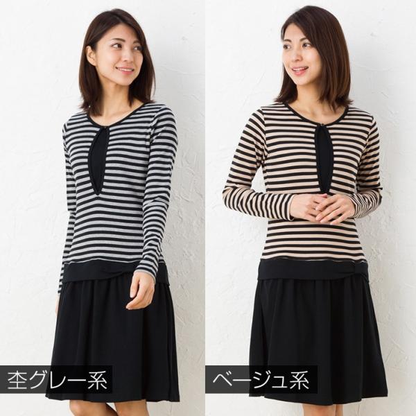 ミルフェルム 授乳服ボーダーウエストリボンワンピース 春/夏/秋/冬 グレー/ベージュ M/L マタニティ 安い 可愛い マリンボーダー 初期 中期