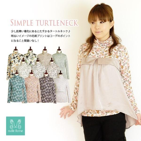 授乳服 花柄タートルネックTシャツ 安い おしゃれ 長袖 日本製 産後 安い 可愛い