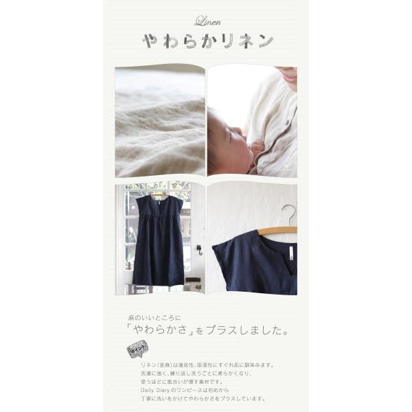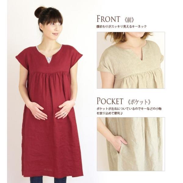 マタニティ フレンチスリーブ リネン ワンピース 産前産後服 長く着られる DailyDiary 麻 夏
