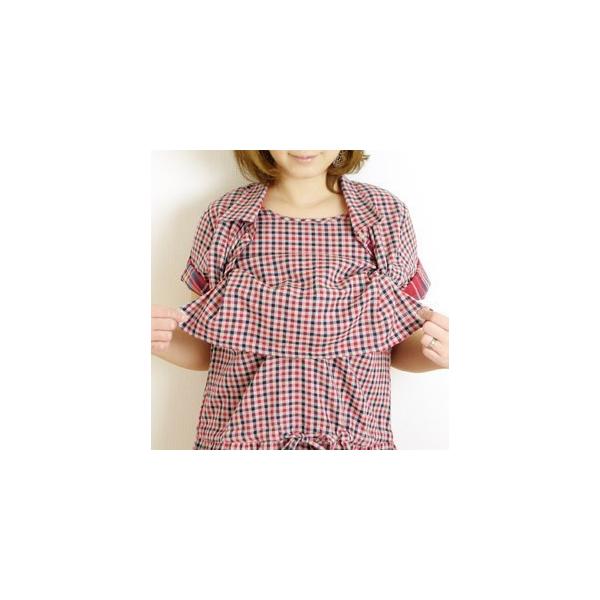 授乳服 マタニティ ワンピース 安い ダブルガーゼマドラスチェックワンピース 可愛い 春夏 M L