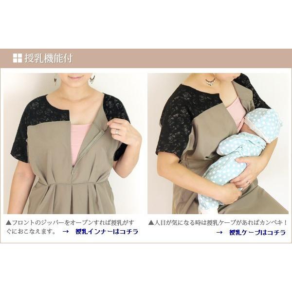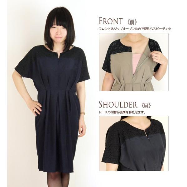 肩レース使いワンピース 授乳服 マタニティ ワンピース 安い 可愛い おしゃれ M 初期 中期 半袖 春夏