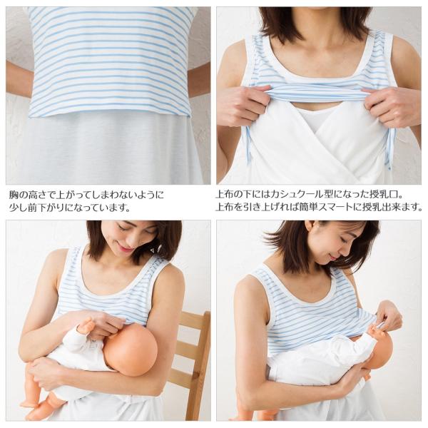 送料無料 授乳服 ボーダー タンクトップ ひんやり消臭!カシュクール 夏 安い おしゃれ 授乳服とマタニティのミルフェルム