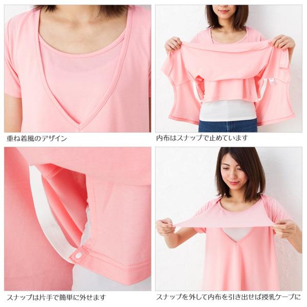 送料無料 授乳服 マタニティ 兼用 半袖 Vネック変形Aライン Tシャツ ひんやり消臭! 夏 産後 授乳ケープ 母乳 授乳服とマタニティのミルフェルム