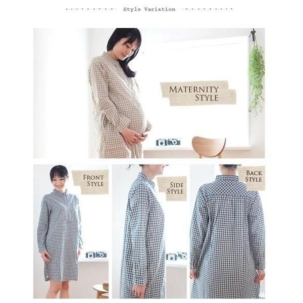 授乳服 マタニティ ワンピース 安い ギンガムチェックボタンダウンシャツワンピース おしゃれ 半額セール ML 春夏
