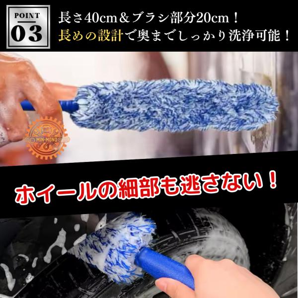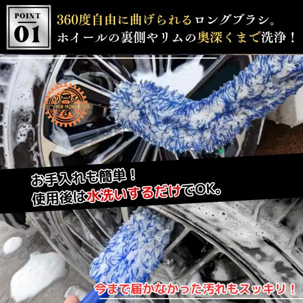 ◆360°曲がるロングブラシで、ホイールの裏側もストレスフリー!