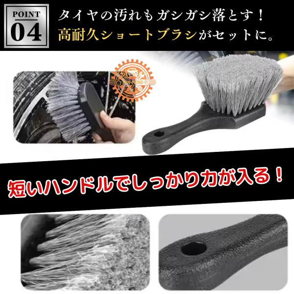◆力の入るショートブラシで、タイヤの泥汚れもガシガシ洗浄!