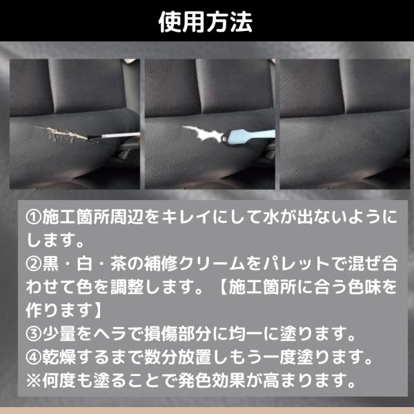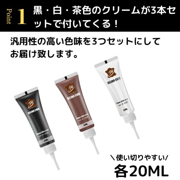 革リペアクリームキット 黒白茶 補修剤 レザー修理 車 革靴