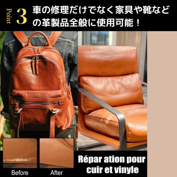 自動車のシートはもちろん、ソファ、椅子、家具製品、ベルト、財布、靴、ブーツ、バッグ、その他の革製品の修復にもご利用いただけます♪