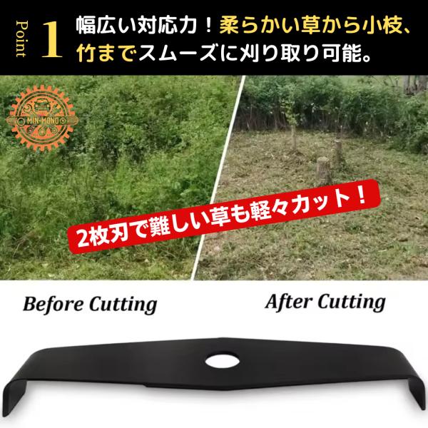 このシュレッダーブレードは、2枚刃の設計により、農業、園芸、ガーデニング、庭先の伸びすぎた雑草や芝生の手入れに最適です。