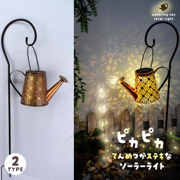 ガーデンライト ソーラーライト 2タイプ 屋外 自動点灯 じょうろ型 防水 LED ガーデン イルミネーション 太陽光 夜間自動点灯 点滅 点灯 おし