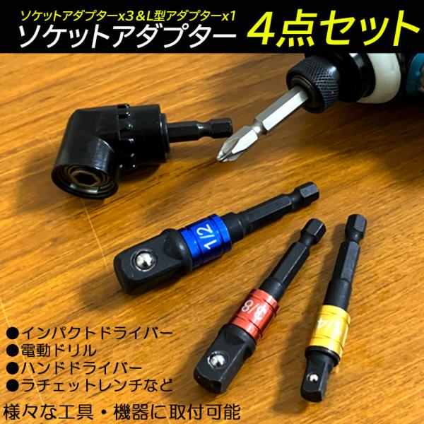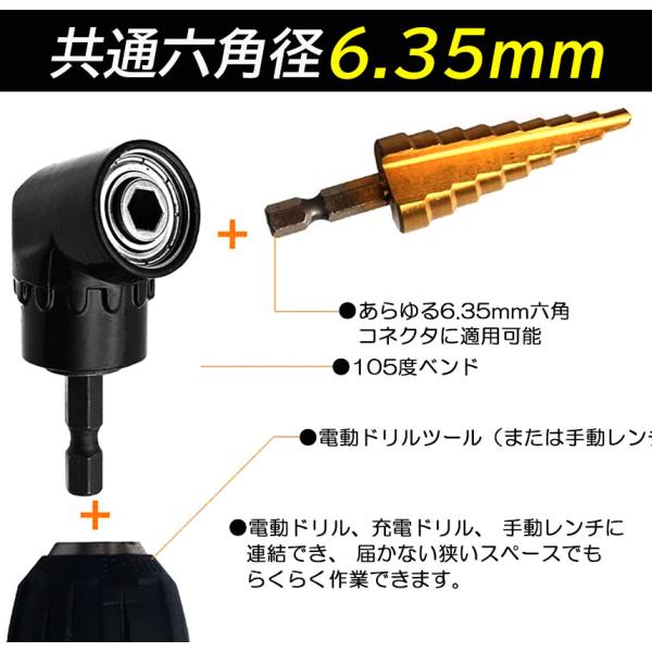 ソケット アダプタ L型 六角シャンク 1/4 3/8 1/2 ドリルアダプター ソケットアダプター 105度 直角ドリルビット 延長ドリルビッ