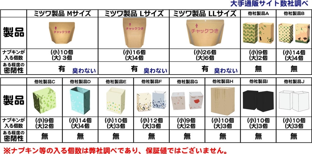 ・1枚にナプキン小が2〜3個入ります。