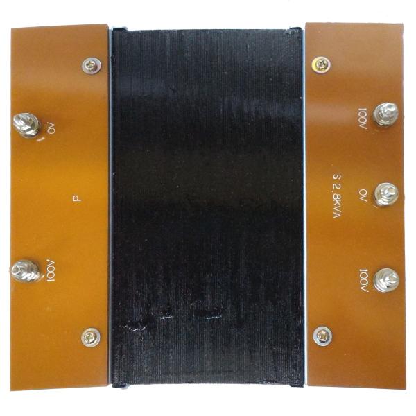 家庭用発電機からの単相2線式正弦波100Vから家庭用分電盤で多用される単相3線式100V及び交流200Vに変換する実験用トランスです。