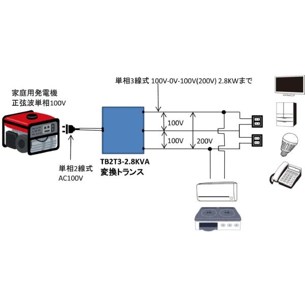 発電機と家の分電盤をつなぐ変圧器 単相2線式AC100V→単相3線式AC200V1系統AC100V2系統変換トランス 停電しても普通に暮らせる!