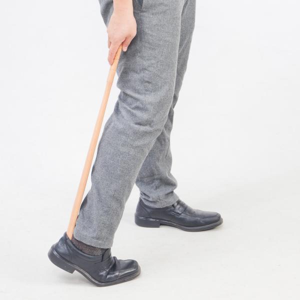 長い靴べらは、立ったままでかがまず靴が楽に履けます。