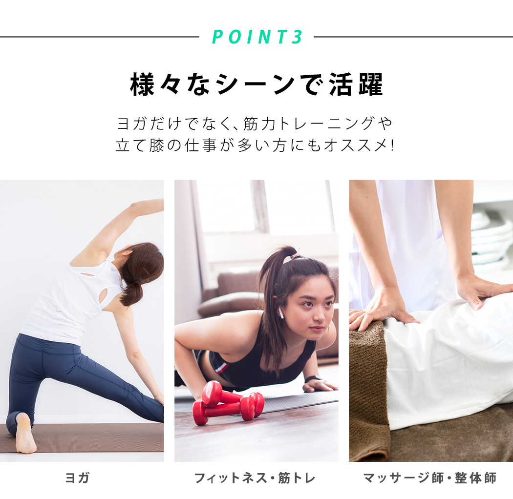 ヨガだけでなく、筋力トレーニングや立て膝の仕事が多い方にもおススメ!