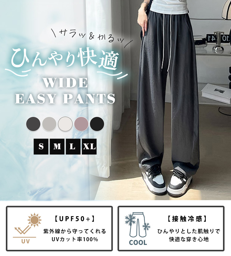 UPF50+ UVカット率100% ワイド パンツ ボトムス 接触冷感 レディース ゆったり きれいめ ロングパンツ 春 夏 体型隠し 薄手 白