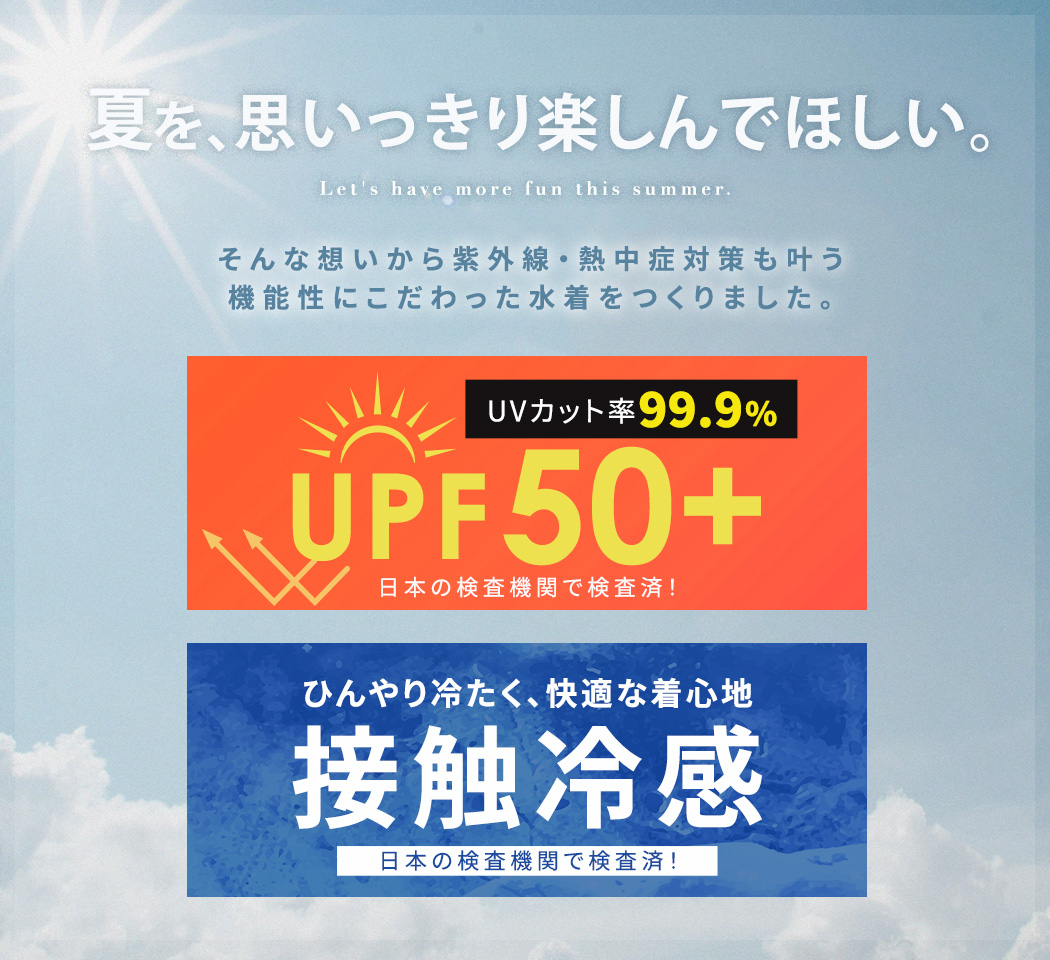 そんな想いから紫外線・熱中症対策も叶う機能性にこだわったラッシュガードをつくりました。
