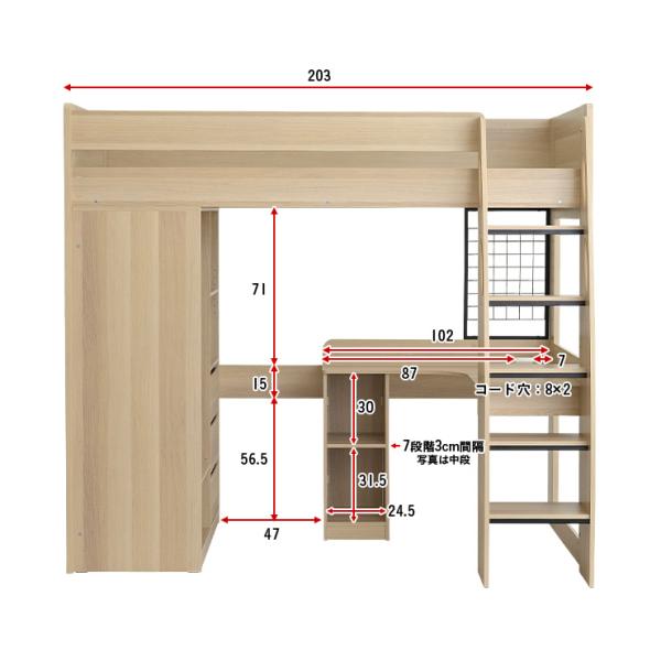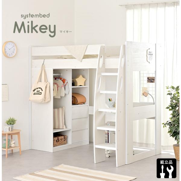 システムベッド 子供 大人用 ロフトタイプ ロフトベッド 机付き 机 システムベッドデスク システムデスク おしゃれ ハイタイプ Mikey(マイキー) 3色対応