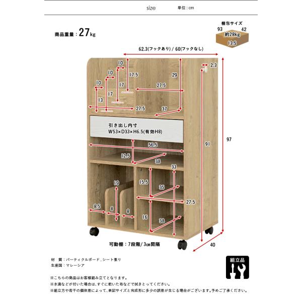 フックなし W60 / フックあり W62.3 x D40 x H97cm