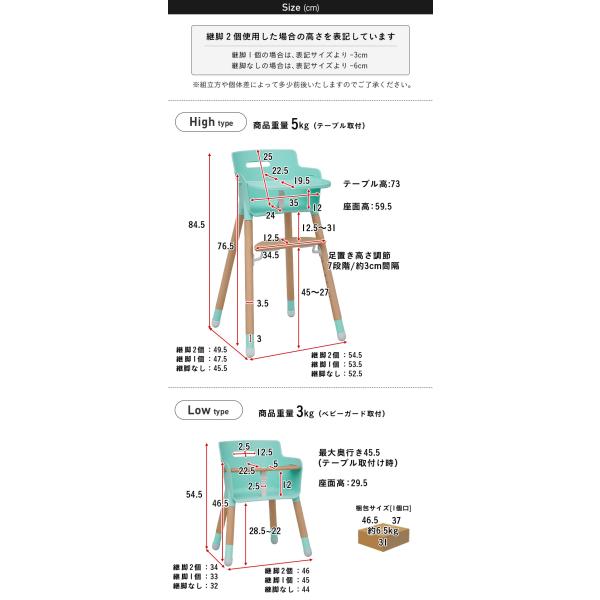 ハイタイプ時:W54 x D50 x H84.5cm(SH59.5cm)