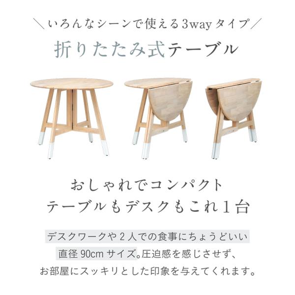 ダイニングテーブル 折りたたみ ダイニング テーブル 丸 伸長式 丸テーブル 円テーブル 円形 白 コンパクト 木製 おしゃれ Courtney(コートニー) 幅90cm 2色対応