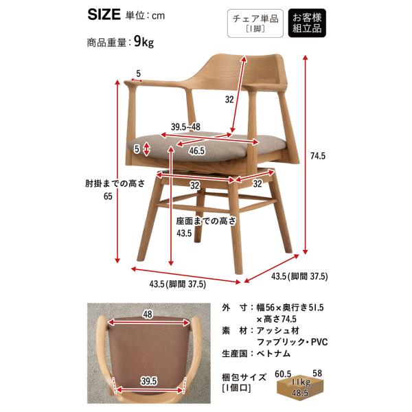 簡単組立 ダイニングチェアー ダイニングチェア 回転椅子 回転チェア 食卓椅子 いす 布地 PVCレザー おしゃれ 木製 肘付きチェア Shaun(ショーン) 1脚 4色対応