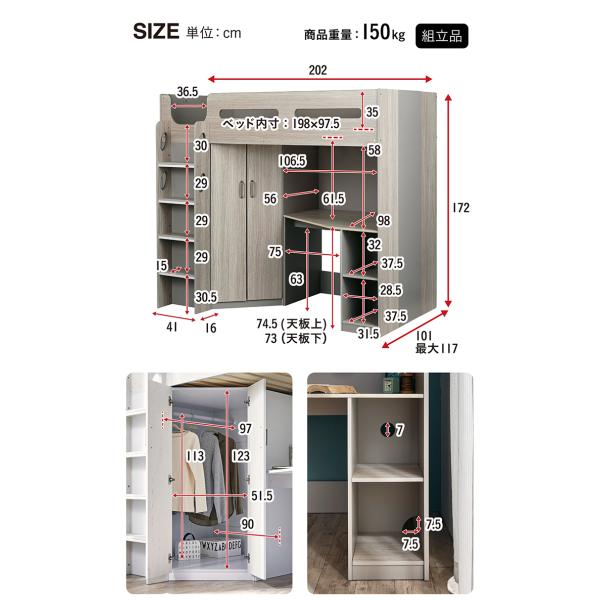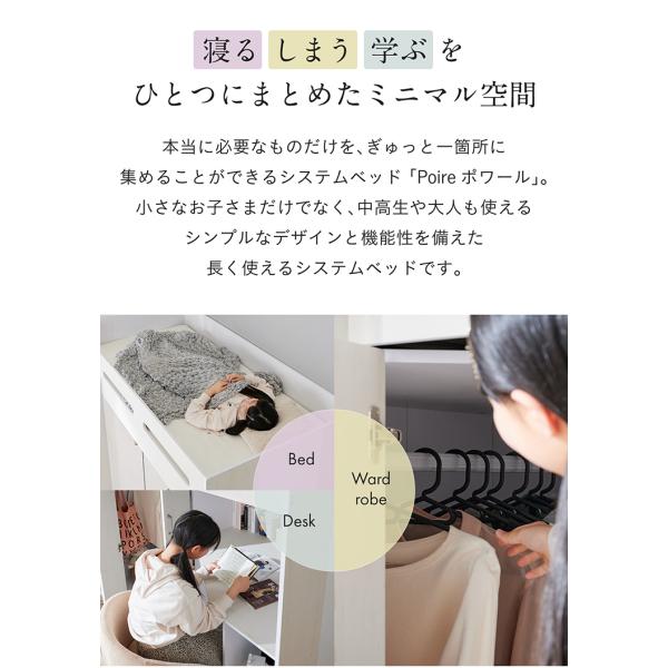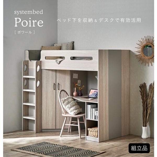 システムベッド 子供 大人用 ロフトベッド システムベッドデスク 学習机 デスク 机付き 木製 ハイタイプ Poire(ポワール) 2色対応