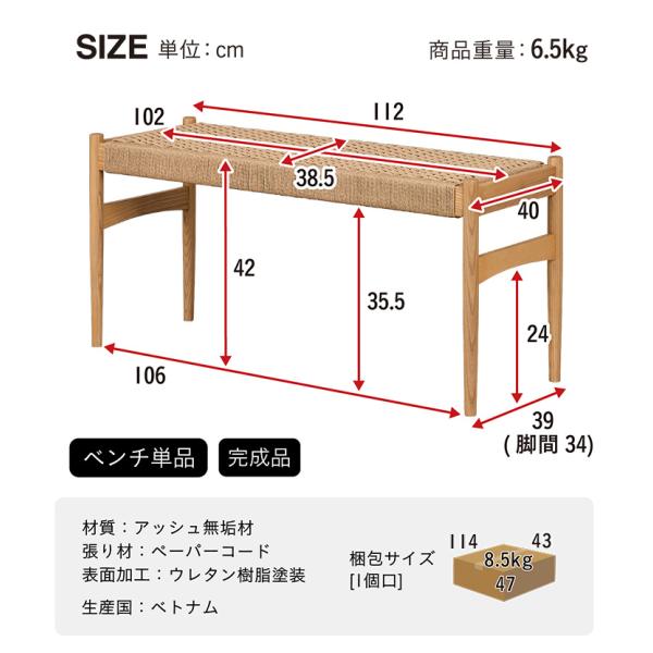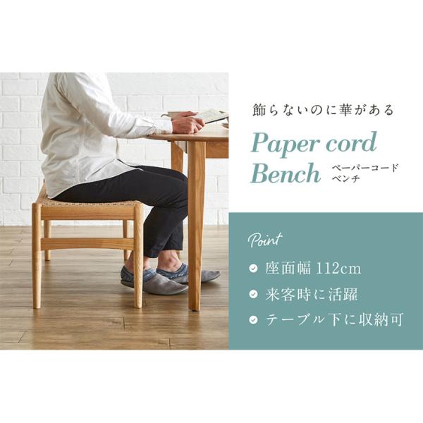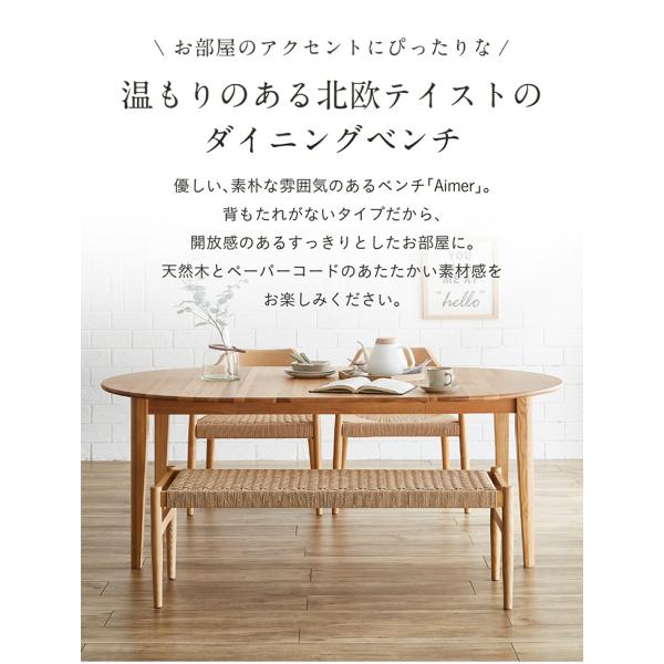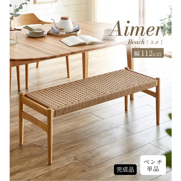 ペーパーコード ダイニングベンチ Aimer(エメ) 幅112cm 完成品 ダイニングチェア ダイニングチェアー ベンチチェア ベンチチェアー 食卓椅子 無垢材 おしゃれ