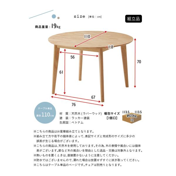 円形ダイニングテーブル 幅110cm 単品 Cocotte3(ココット3) ダイニング テーブル 4人掛け 食卓テーブル ラウンドテーブル 円卓 作業台 シンプル 木製 おしゃれ