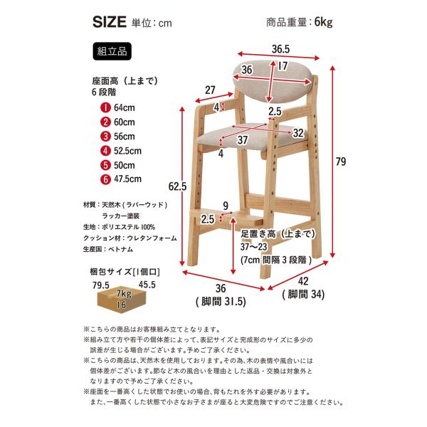 W36.5 x D42 x H79cm(SH47.5〜64cm)