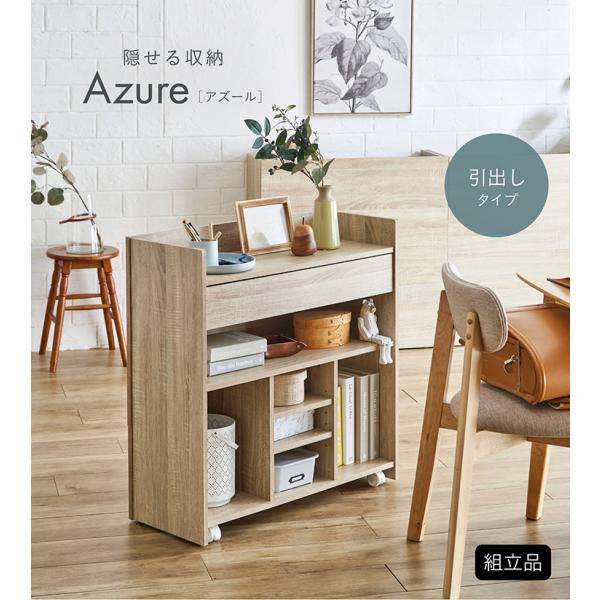 キャスター付き 収納 ラック 棚 キャビネット シェルフ 小物入れ 小物収納 おしゃれ 子供部屋 リビング 幅79cm 引き出し付き 隠す収納 Azure(アズール) 2色対応